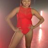 A nylon matt lycra leotard with mesh over the bodice front & back. Binding to the bodice front & back adds a subtle trim.